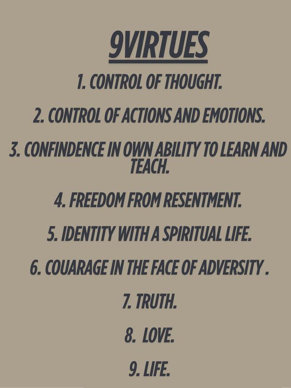 The 9 virtues are guides for making strong, purposeful decisions in life.